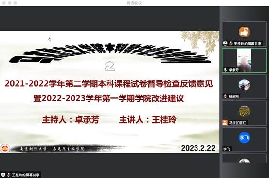 资深教师王桂玲作了题为《2021-2022学年第二学期本科课程试卷督导检查反馈意见暨2022-2023学年第一学期学院改进建议》的专题报告。王老师依据91吃瓜