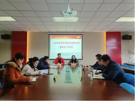 在德正楼508会议室召开本科教育教学审评评估动员暨教学工作会议。院长卓承芳教授、副院长刘希刚教授、全体教研部主任、教学秘书等参加会议。会议由刘希刚副院长主持。