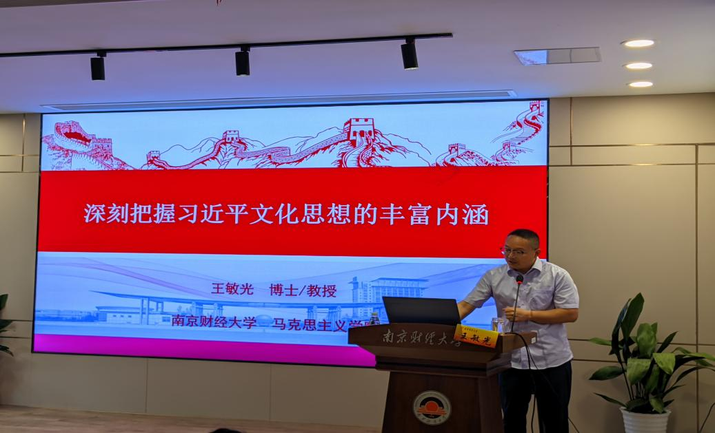 副院长王敏光作题为《深刻把握习近平文化思想的丰富内涵》的专题报告。讲座以习近平文化思想为切入点,通过生动的语言、详实的史料以及与当今社会相结合的角度,从“把握习近平文化思想相关的几个问题”“准确把握习近平文化思想的丰富内涵”“深入贯彻习近平文化思想”等三个方面,向全体学员阐述了习近平文化思想的深刻内涵。