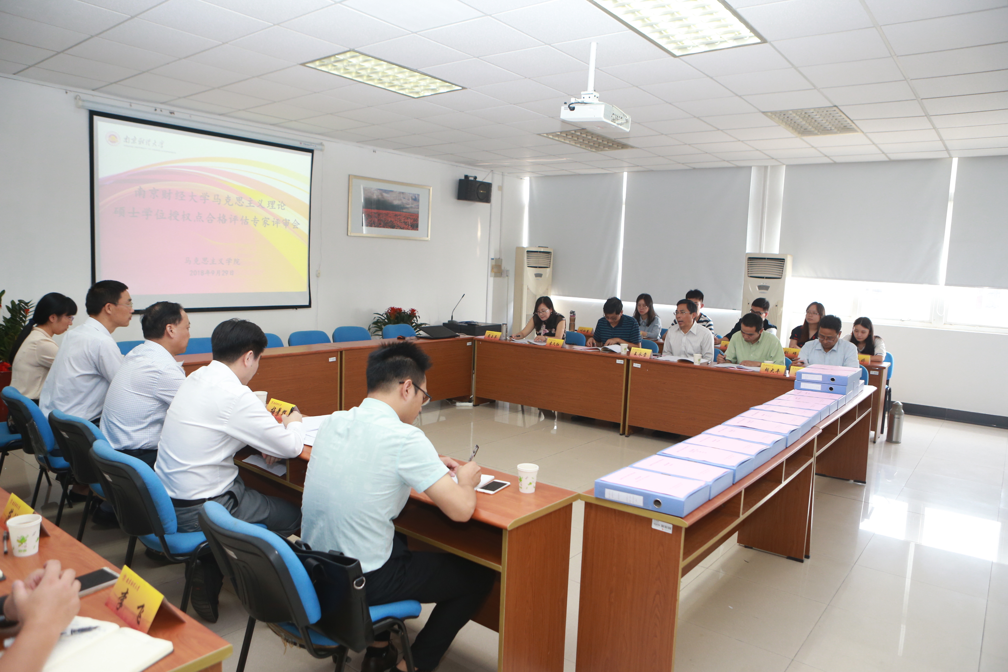 院长梅景辉教授从我校马克思主义理论硕士学位点的发展目标、学科方向、师资队伍建设、研究成果、招生选拔、培养方案、学术训练、就业质量等方面分别向评议专家详细汇报了本学位点建设的基本情况。汇报内容客观、全面地展现了马克思主义理论硕士学位点的发展特色和优势,也对今后相当长一段时期内学位点的发展规划和目标定位进行了阐述。同时与会专家还召开了骨干教师和研究生座谈会,现场查阅了学科点建设的相关支撑材料,全面地了解了近年来我校马克思主义理论硕士学位点建设的基本概况,并对本学位点的建设成效进行了深入探讨和评议。