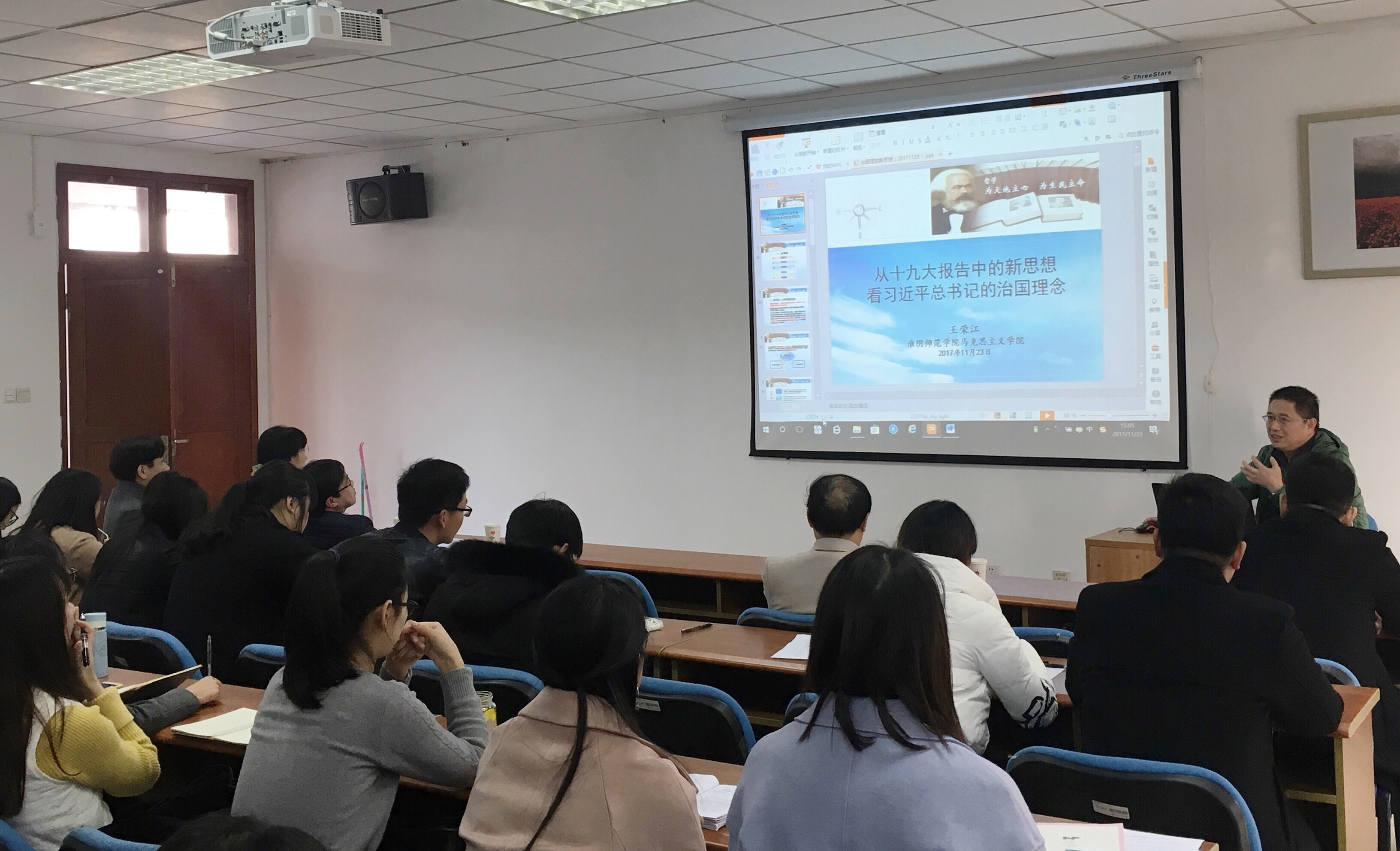 部分教师和全体研究生作了题为“从十九大报告中的新思想看习近平总书记的治国理念”的学术讲座,讲座由91吃瓜