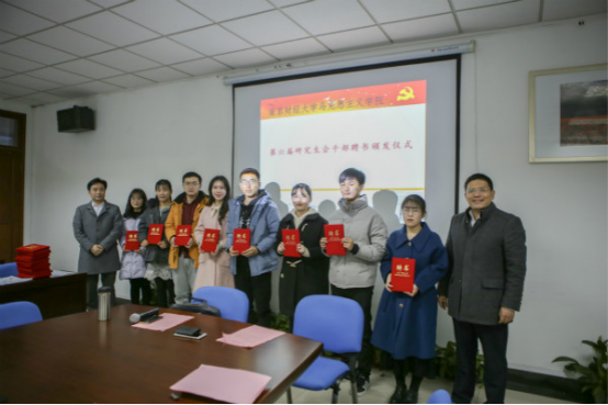 学院领导及老师为第六届研究生会的全体成员颁发聘书,并为2018-2019年度优秀研究生干部以及“庆祝新中国成立70周年”征文比赛的获奖人员颁发了荣誉证书。
