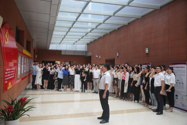 为迎接建党99周年,全体参会党员面对党旗,重温入党誓词,庄严宣誓,再次接受深刻的党性教育和精神洗礼。
