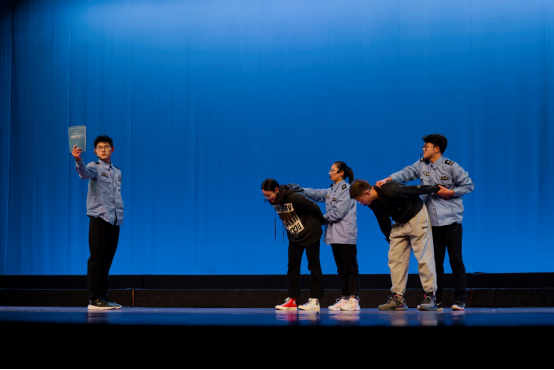 比赛中,同学们将不文明的社会现象以及社会热点问题搬上舞台,旨在教育大学生们养成良好的道德品质、树立健全的法治意识。其中,作品《对校园贷say no》以女大学生贷款为中心情节展开一系列跌宕起伏的表演,深刻揭露了校园贷的危害,提醒同学们一定要拒绝校园贷,享受纯净校园生活,鼓励大家面对不法分子的犯罪行为要敢于拿起法律武器维护自己的权利。作品《你好,垃圾》以生动的表演、深刻的立意赢得满堂喝彩,让同学们进一步学习了垃圾分类常识、宣传了垃圾分类在减少占地、减少环境污染以及变废为宝的重要意义,鼓励大家积极践行垃圾分类。作品《疫情之下的一家人》以顾秦一家的日常生活为生活场景,再现了新冠疫情初期医护人员的辛苦、患者家属的牵挂以及疫情给人们带来的不可磨灭的伤痛,号召同学们积极配合疫情防控工作。作品《风云变幻决胜小康》构造了两个不同时期的小酒馆聊天场景,其一是上世纪50年代三大改造时期人们在酒馆聊集体化的场景,其二是几十年后场景一中人物的孙辈再聚小酒馆,畅聊改革开放42年来祖国取得的一系列成就的场景,号召同学们发奋图强,为实现中华民族伟大复兴而努力奋斗……8个小品内容精彩纷呈,弘扬正能量,为同学们树立了正确的价值观导向。在近两个小时的赛程中,全场座无虚席,气氛热烈,掌声、笑声此起彼伏。