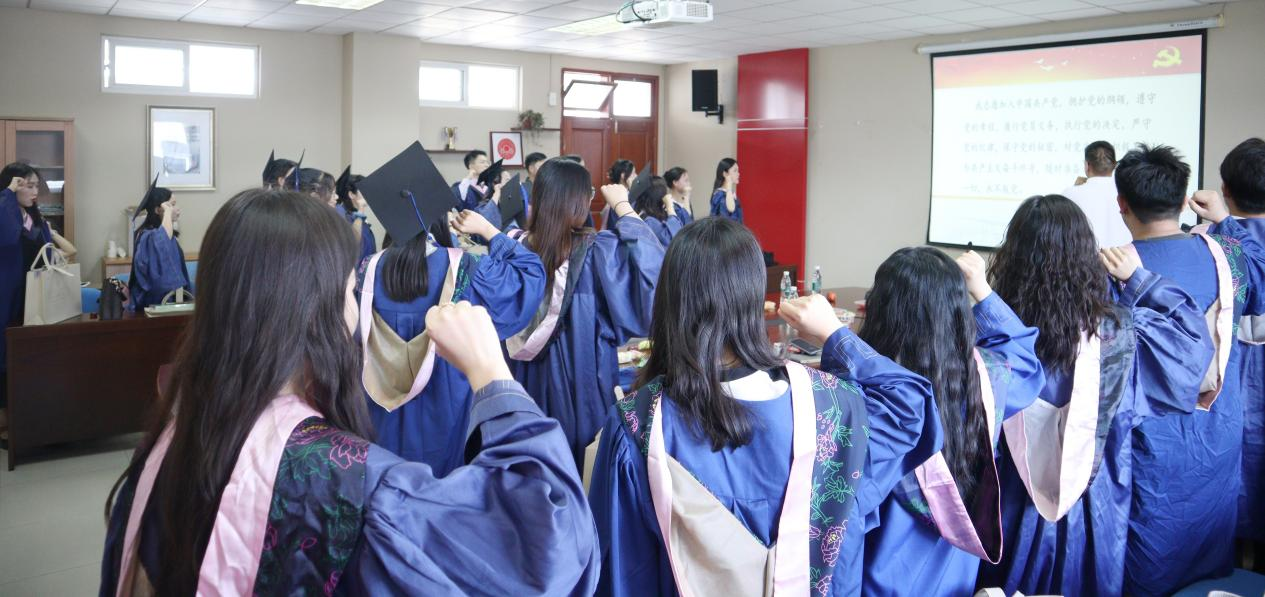 最后,在政治辅导员王晶同志的带领下,所有毕业生党员集体重温了入党誓词。