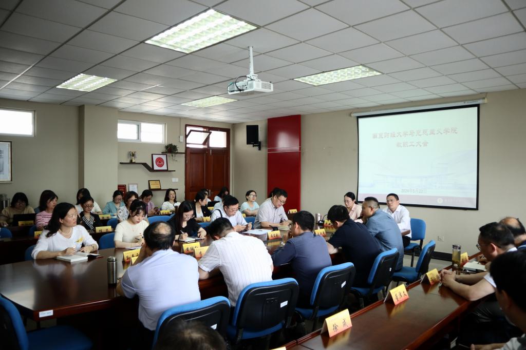 在德正楼508会议室召开全院教职工大会,学院党政领导班子成员和全体教师参加会议。会议由学院党委书记陈翔主持。
