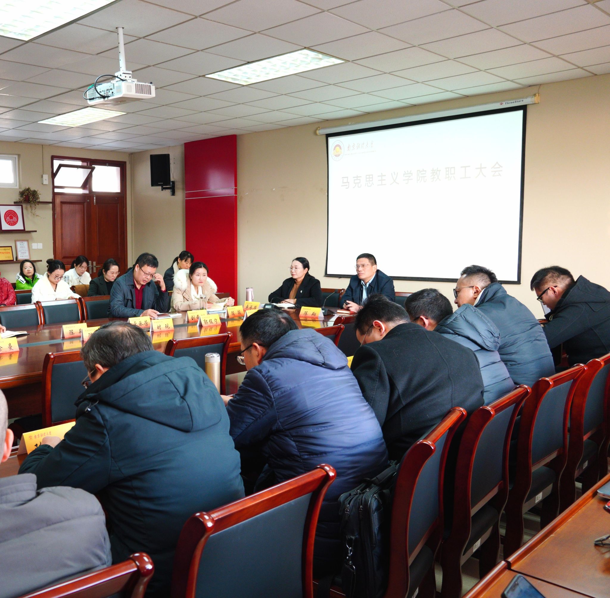 在学院教职工大会上,学院领导陈翔、刘希刚、王敏光分别就学院文化建设、期末考试、国家社科基金申报进行了安排。
