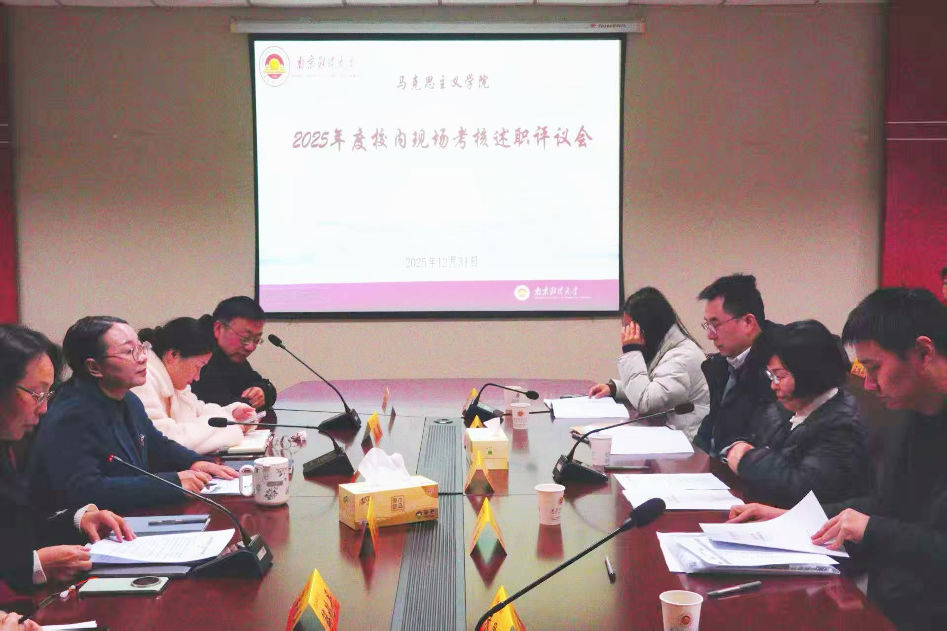 在德正楼508会议室召开全院大会,会议分为全体教职工大会与2025年度现场考核述职测评会议两个阶段进行。会议由学院党委书记李骏主持。