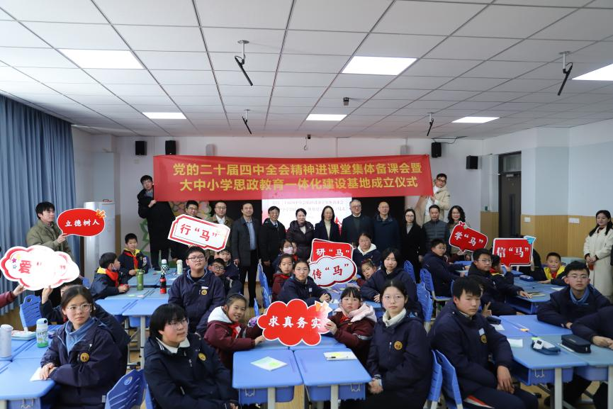 于1月9日在南京仙林外国语学校华侨城中学与中共南京市栖霞区委宣传部、仙外华侨城中学、仙外华侨城小学共同举办党的二十届四中全会精神进课堂集体备课会暨大中小学思政教育一体化建设基地成立仪式。栖霞区委宣传部副部长兼文明办主任罗红玲、南京仙林外国语学校党委委员程迓庆副校长、91吃瓜