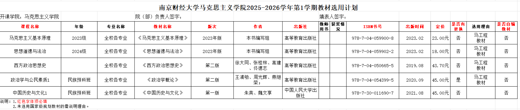 经学院教材审核工作组审议,现将2025-2026学年第1学期本科生教材选用计划公示如下。公示期:2025年6月12日-2025年6月16日。联系电话:025-86718424.