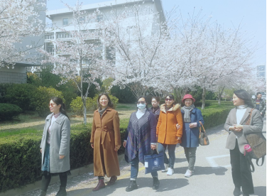 天气晴朗,春风荡漾,女教师们笑逐颜开,一边欣赏校园樱花美景,一边畅谈学院美好未来,有的老师忍不住举起手机拍下美好瞬间。