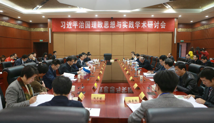 副院长(主持工作)耿步健、党委宣传部部长韩力争,省委宣传部理论处尤健副处长、我校党委宣传部副部长梅景辉主持。会上,与会专家学者围绕“习近平治国理政思想与实践”主题,紧紧围绕“四个全面”“五大发展理念”、党的十八届六中全会精神和马克思主义理论的当代发展,结合各自专业背景和工作实践,从马克思主义理论、哲学、法学、政治学、经济学、社会学、新闻学等角度分享了各自的研究心得。大家还就主题报告中的观点进行了讨论、交流,深化了对习近平治国理政思想深刻内涵的理解和认识。现场与会专家学者踊跃发言,讨论热烈。