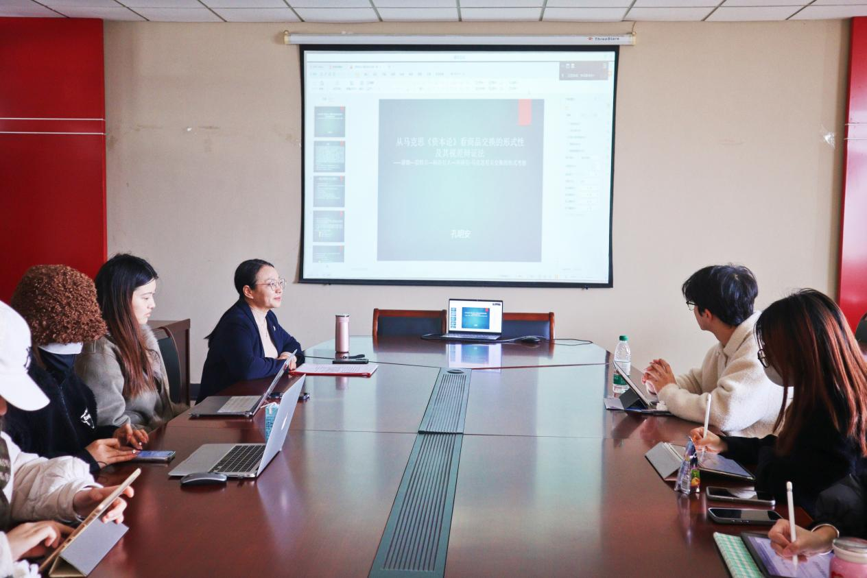 师生作题为“论马克思《资本论》中的商品交换的形式性及其视差辩证法”的学术讲座。本次讲座由院长卓承芳教授主持,2023级研究生参与学习。