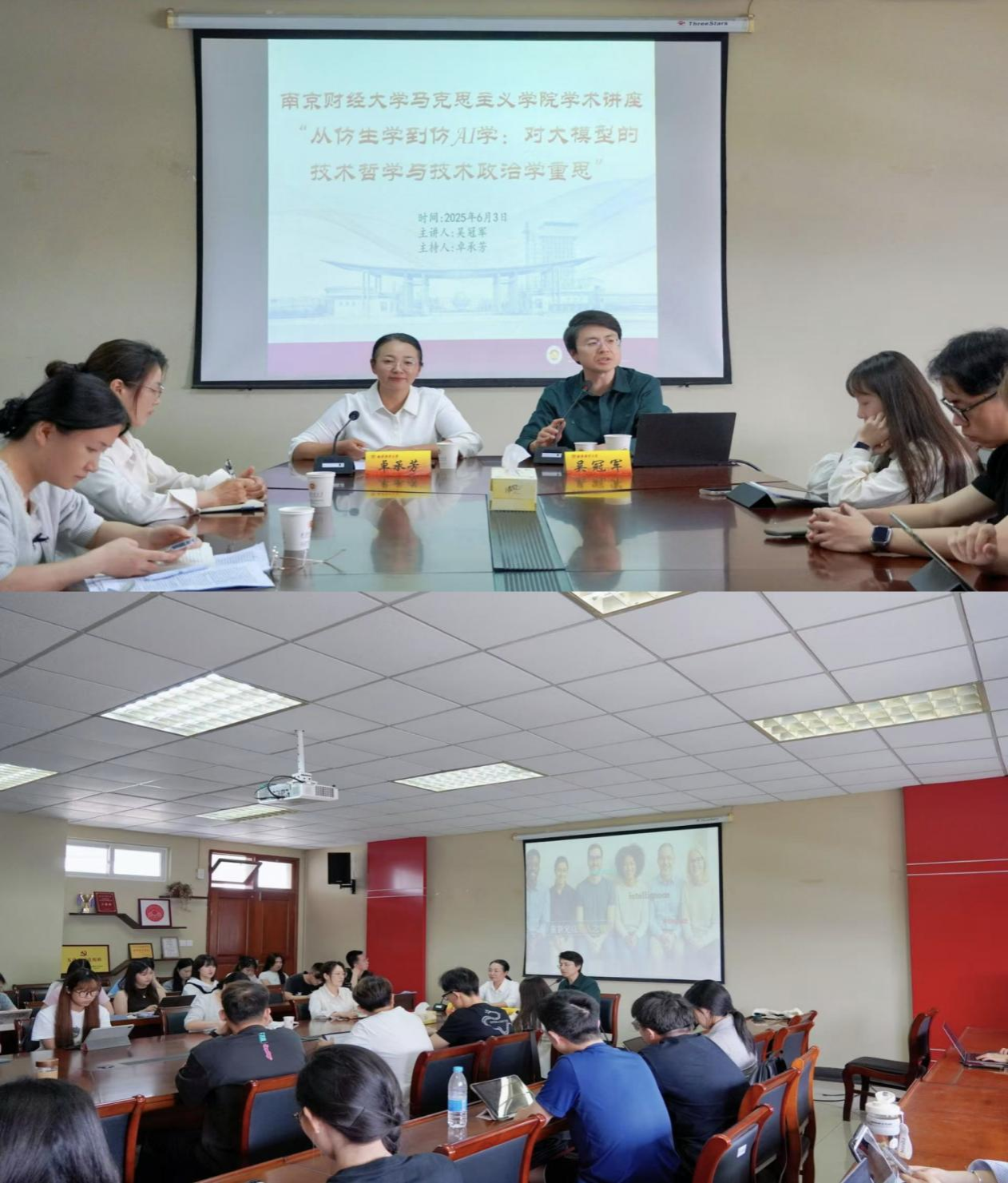 师生作题为“从仿生学到仿AI学:对大模型的技术哲学与技术政治学重思”的学术讲座。本次讲座由院长卓承芳教授主持,学院教师代表以及2023级、2024级研究生参与学习。