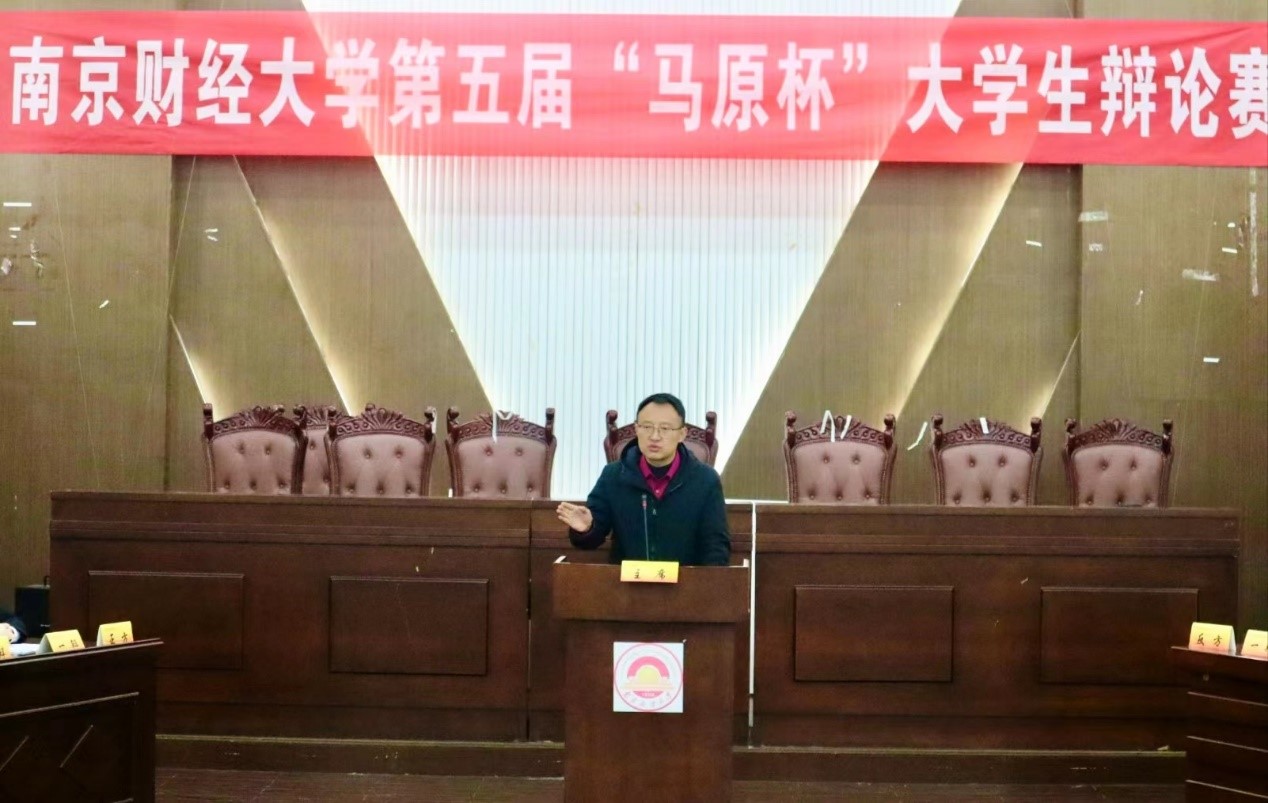 121日晚,由91吃瓜 主办、文印辩论社协办的91吃瓜 第五届马原杯大学生辩论赛决赛在德正楼模拟法庭隆重举行。决赛邀请我校党政办主任郑锷、党委组织部副部长徐刚、宣传部副部长秦韶华、91吃瓜 副院长刘希刚、91吃瓜 马原教研部副主任赵磊担任评委。
