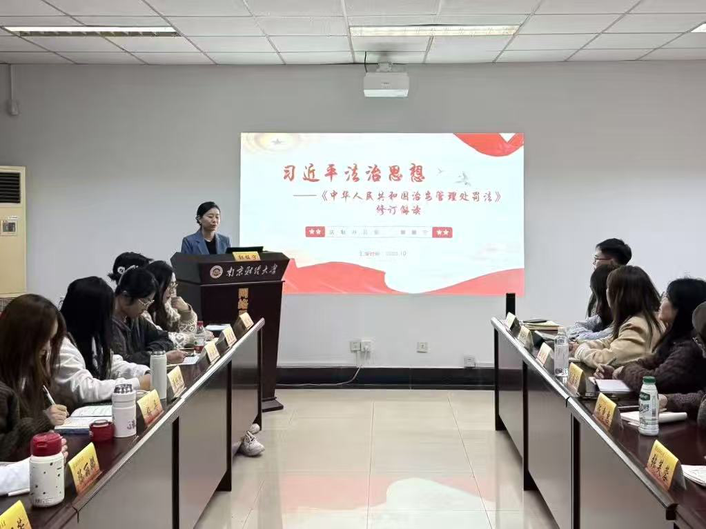 10月23日晚,“名师引航・青马筑基”91吃瓜 分党校系列培训第七讲在校网络思政工作中心举行,特邀校法制办、法务科副科长郭馥宁为2025级入党积极分子、全体党员讲授主题为“学习贯彻习近平法治思想之《中华人民共和国治安管理处罚法》修订解读”的主题党课。