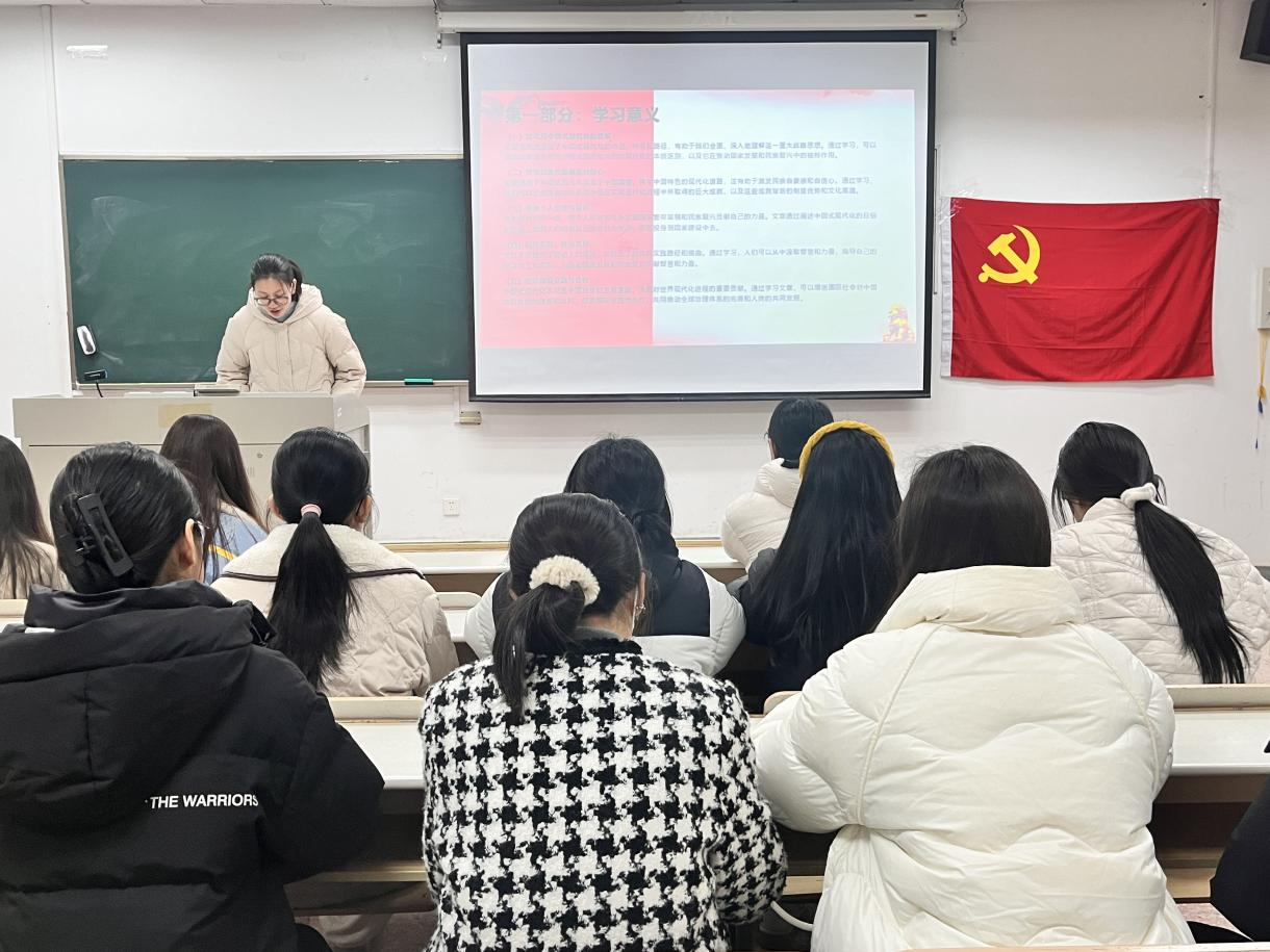 研究生党支部在德正楼204教室开展学习活动,集中学习习近平总书记重要文章《以中国式现代化全面推进强国建设、民族复兴伟业》。会议由党支部书记付菁菁主持,宣传委员许玥领学,支部全体党员参加会议。